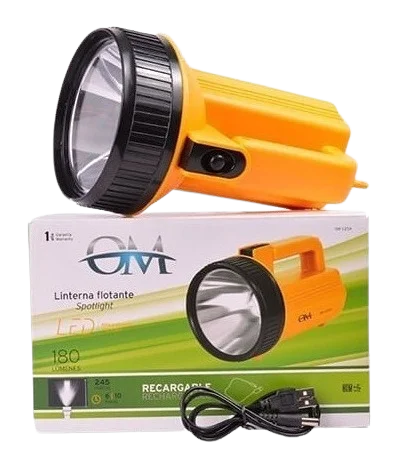 Linterna reflector flotante con manija, recargable mediante USB.