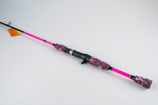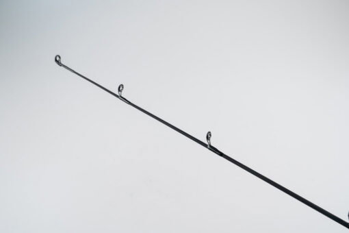 Caña de BaitCast en 1 tramo con mango de goma partido y pasahilos aptos multifilamento .
